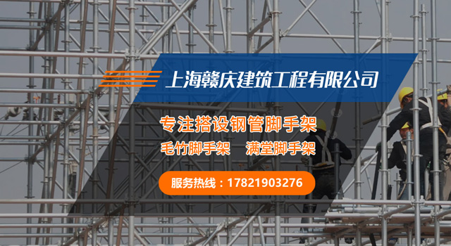 上海贛慶建筑工程有限公司主要從事腳手架工程搭建,室內(nèi)滿(mǎn)場(chǎng)腳手架、腳手架工程施工﹙土建腳手架,裝修等各類(lèi)腳手架﹚,腳手架鋼管租賃。